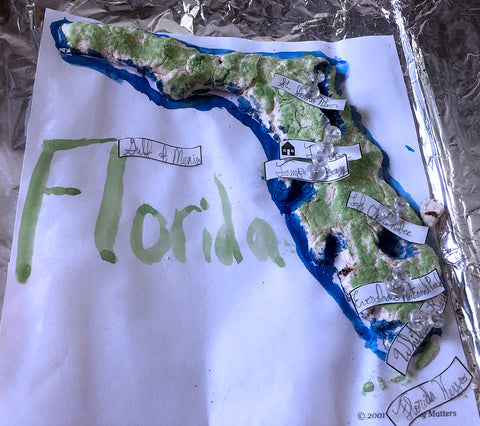 First, it required lessons in character building for us to attempt something unfamiliar, patiently following directions and giving plenty of space for mistakes. Working with salt dough and making a topographical map can be tricky. But, if you and your child can keep in mind that it’s not meant to be a science but an art, you can have a lot of fun.